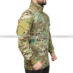 Торс рубахи имеет гладкий профиль, за счет чего её удобно носить под бронежилетом или разгрузкой. Торс выполнен из эластичного трикотажа, хорошо облегает фигуру, тянется и дышит. Верхняя часть, ворот и рукава выполнены из более плотной Рипстоп ткани. Ворот застегивается на молнию. На плечах есть карманы. Манжеты рукавов на липучке.