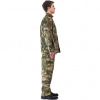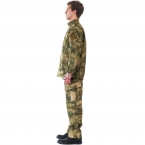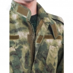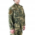 Полевая форма F1002 расцветки Green Camo надежно сшита, не требует особого ухода, достаточно хорошо вентилируется. Материалом для её изготовления была выбрана плотная ткань, состоящая из нейлона (65%) и хлопка (35%). Все детали хорошо прошиты, в некоторых местах используется двойная строчка. Костюм состоит из кофты с воротом и длинными рукавами и штанов. Каждый костюм имеет свой размер (размеры указаны под описанием в таблице).