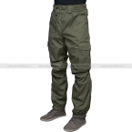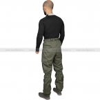 Брюки, аналогично куртке, имеют вшитые резинки для адаптации к фигуре носителя (на поясе, в зоне за коленом и по низу штанин). Гульфик (ширинка) на молнии, закрывающий клапан на кнопках. На поясе есть шлемки под брючный ремень. Зоны брюк, подверженные наиболее серьезному износу (сидение, колени), усилены дополнительным слоем ткани. Сверху, по бокам, есть карманы. На бёдрах есть 2 достаточно вместительных кармана, закрывающихся на кнопку.