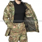 Куртка немного удлиненная, застегивается на молнию, скрытую ветрозащитным клапаном на кнопках. Верхняя часть куртки переходит в несъемный капюшон, объем которого можно настроить кулисками с фиксатором. Аналогично можно настроить объем и нижнего края куртки. По бокам, в зоне манжет и локтевых суставов имеются вшитые резинки, способствующие более точной посадке куртки на теле.