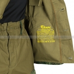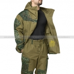 Куртка застегивается на пуговицы. Верх переходит в несъемный капюшон с козырьком. Объем капюшона регулируется шнурком с фиксатором. Манжеты рукавов и пояс снабжены эластичными резинками, чтобы не задувал ветер. Низ куртки имеет вшитую кулиску с фиксатором для регулировки объема. Области повышенного износа (плечи и локти) усилены тканевыми накладками для увеличения срока службы изделия. На рукавах куртки есть 2 небольших кармана на липучке. Кроме того, есть 1 внутренний карман на пуговице.