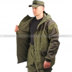 Куртка застегивается на пуговицы (супатная застежка, защищающая от задувания ветра). Верхняя часть куртки переходит в несъемный капюшон с кулиской для регулировки объема. Манжеты рукавов на резинке. Подгонка по талии осуществляется с помощью вшитой кулиски. На куртке 5 карманов: 2 нижний прорезных с клапаном, по 1 карману на рукаве, 1 внутренний карман на пуговице.