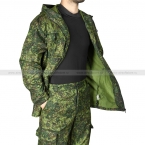 Куртка застегивается на молнию, сверху переходит в несъемный капюшон с утяжками для регулировки объема. На груди есть карманы с клапанами на липучке, а по бокам на молнии. Манжеты рукавов на резинке.