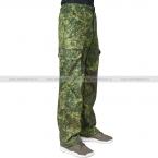 Брюки не стесняют движений, имеют прямой крой, застегиваются на пуговицу, гульфик (ширинка) на молнии. На поясе есть шлевки для ношения ремня. По бокам расположены прорезные карманы. Кроме того, есть 2 больших набедренных кармана.