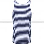 Облегченная майка-тельняшка без рукавов для ношения в тёплое время года. Тельняшка изготовлена из 100% хлопка в соответствии с ГОСТ 20462-87, не стесняет движений. В разных партиях цвет полос может варьироваться от синего до тёмно-синего.