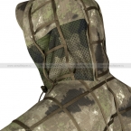Удобная, качественно сшитая камуфляжная накидка для снайперов и охотников. Прекрасно маскирует верхнюю часть торса и голову. Для того, чтобы ещё больше сливаться с окружающим ландшафтом, на внешней стороне нашиты стропы для крепления веток, листвы и пр. У капюшона есть небольшой козырек, а по бокам (в области ушей) идут сетчатые вставки. Кулиски с фиксатором на капюшоне, рукавах и спине позволяют настроить накидку точно по размеру.