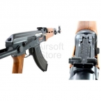 Питание Cyma CM028S рекомендуется производить от 8.4V аккумулятора. В комплекте идут: бункерный магазин, шомпол, оружейный ремень.