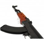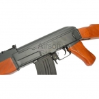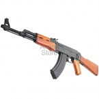 Точная копия боевого автомата АК47. Качественные материалы изготовления. Корпус, ствол, накладка на приклад (тыльник) и магазин выполнены из металла. Цевье, приклад и пистолетная рукоять изготовлены из дерева. Все части тщательно подогнаны друг к другу, минимум люфтов. Вес привода около 3 кг.