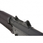 Аккумулятор АК-типа размещается под крышкой ствольной коробки и при необходимости заходит в газоотводную трубку. Для доступа и настройки hop-up необходимо открыть шторку затвора. Привод оборудован гирбоксом версии 3, который при необходимости поддается ремонту и тюнингу.
