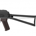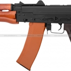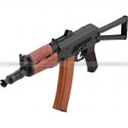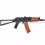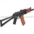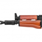 Страйкбольный привод CYMA CM045A является точной копией реального боевого автомата. Различить их между собой можно только с близкого расстояния. Вес CM045A составляет 2720 грамм. Общая длина – 735 мм, а со сложенным прикладом – 500 мм. Длина стволика составляет примерно 295 мм, а диаметр резьбы – 14 мм.