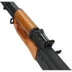 Страйкбольный привод CYMA CM048S является точной копией реального боевого автомата семейства автоматов Калашникова – АКМС. Масштаб 1 к 1, корпус, ствол и приклад выполнены из металла, материал изготовления цевья – натуральное, хорошо обработанное дерево. Вес автомата с аккумулятором составляет ~3250 грамм. Складывающийся приклад позволяет лучше маневрировать в помещениях, бункерах и других местах с ограниченным пространством. Общая длина CM048S равна 900 мм, а со сложенным прикладом – 670 мм. На корпусе есть антабки для крепления оружейного ремня.