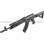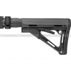 Приклад телескопический позволяет варьировать длину для максимального комфорта при упоре. Кроме того, нажав на кнопку, расположенную справа в основании приклада, пользователь получает возможность сложить приклад на левую сторону ствольной коробки. Это упрощает процесс транспортировки и облегчает передвижение с автоматом по пересечённой местности.