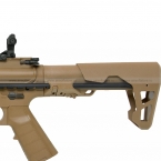 Корпус (ресивер) состоит из двух частей, выполненных из прочного нейлонового волокна. Это снижает вес, но при этом не влияет на надежность. Цевье изготовлено из алюминиевого сплава, имеет интерфейс M-LOK, на который предустановлено 3 металлические планки стандарта RIS (20 мм). Пистолетная рукоять, магазин и приклад – пластиковые. Крепежные винты и штифты – стальные.