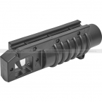 Подствольный страйкбольный гранатомет для стрельбы выстрелами "Москит 2.0" от СтрайкАрт. Гранатомет быстро и удобно устанавливается на любой страйкбольный привод с 20 мм рельсой (RIS) на нижней грани цевья, а также на гранатометную платформу "Стилет".