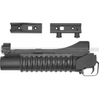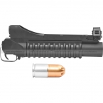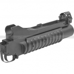 Страйкбольная версия 40 мм подствольного гранатомета M203 с укороченным стволом для страйкбольных автоматов М-серии. Комплектуется тремя видами креплений: два вида для крепления на ствол и одно на планку Пикатинни, за счет чего эту модель гранатомета можно использовать с RIS цевьями. В комплекте с гранатометом идет одна многоразовая граната типа BB Shower (поставляется бесплатно, в качестве подарка). Возможно применение совместимых пусковых устройств от СтрайкАрт и TAG Innovation.