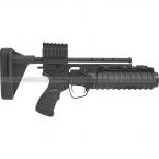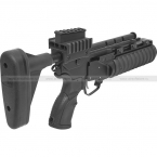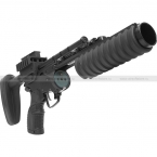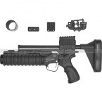 Корпус гранатомета изготовлен из алюминия. Изделие поставляется в комплекте со standalone платформой. При желании гранатомет с платформы можно снять и установить на нижнюю RIS-планку цевья страйкбольного оружия.