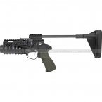 Пусковое устройство "KICKER" с комплектом оборудования (standalone платформа) для трансформации в компактный ручной гранатомет. Гранатомет стреляет 36 мм выстрелами серии "КС" от TAG Inn. Для функционирования не требует ни заправки газом, ни аккумулятора. Пусковое устройство KICKER работает по принципу механического инициирования вышибного заряда.