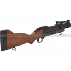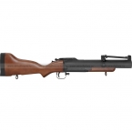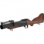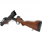 Ручной однозарядный страйкбольный гранатомет калибра 40 мм, копирующий гранатомет армии США второй половины 20-го века – М79. Ствол – металлический, приклад выполнен из настоящего дерева с резиновым тыльником.