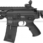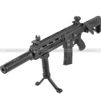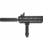 Шестипозиционный телескопический приклад позволяет удобно настроить привод под длину рук владельца. Тактическая рукоять имеет выдвигающиеся сошки, что удобно, если необходимо вести огонь в положении лёжа.