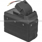 Питание пулемета от аккумулятора, устанавливаемого в магазин, является опциональным (не обязательным). Данная опция полезна, например, если больше некуда вывести аккумулятор или не хватает места для установки аккумулятора большого объема. Для питания пулемета используется коннектор Deans (Т-коннектор). Из верхней вставки магазина выходят для провода: "+" и "-", которые необходимо подключить в цепь, как если бы это был обычный аккумулятор.