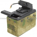 Бункерный магазин с электроподачей шаров для пулеметов серии M249 (A&K и аналогов). Выполнен из прочного пластика методом 3D печати. Отделение вмещает 2700 шаров. Вес (без шаров) ~580 грамм.