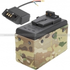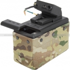 Бункерный магазин с электроподачей шаров для пулеметов серии M249 (A&K и аналогов). Выполнен из прочного пластика методом 3D печати. Отделение вмещает 2700 шаров. Вес (без шаров) ~580 грамм.