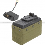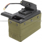 Бункерный магазин с электроподачей шаров для пулеметов серии M249 (A&K и аналогов). Выполнен из прочного пластика методом 3D печати. Отделение вмещает 2700 шаров. Вес (без шаров) ~580 грамм.