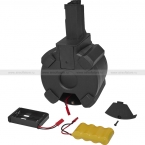 Магазин с электрической подачей шаров для страйкбольных приводов серии MP5 от CYMA и аналогов. Шары подаются при нажатии на кнопку, расположенную на фронтальной части. Питание магазина осуществляется от батарейки типа "крона" (в комплект не входит). Элемент питания устанавливается в отсек, расположенный в задней нижней части магазина. Для этого необходимо открутить винт.