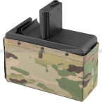 Вместительный бункерный магазин с автоматической подачей шаров для страйкбольных пулеметов CM26 LMG от G&G. Магазин работает от двух батареек CR123A (в комплект не входят). При примыкании к корпусу магазин начинает автоматически подавать шары. Отсек вмещает 2500 шаров. С внешней стороны корпус магазина обтянут тканевым чехлом в расцветке Multicam.