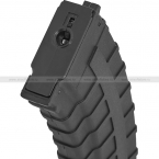Механический магазин для страйкбольных приводов серии АК (CYMA и аналоги), выполнен в стилистике магазинов под калибр 7.62. Магазин вмещает до 140 шаров. Корпус изготовлен из ударопрочного пластика, внешняя поверхность текстурная/рельефная для удобства хвата.