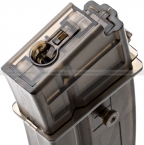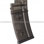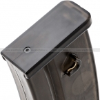 Прозрачный,видно сколько шаров осталось.Из минусов-лодер той же фирмы не очень хорошо подходит для зарядки этих механов.До половины идет легко,потом надо давать серьезное усилие.
