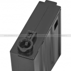 Укороченный механический магазин для страйкбольных винтовок серии SR-25 от Double Bell и аналогов. Вмещает в себя ~50 шаров. Корпус выполнен из металла (сталь), окрашен в черный цвет.