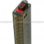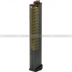 Механический магазин для пистолета-пулемета CXP-MARS PDW9 от ICS. Вмещает до 120 шаров. Корпус магазина изготовлен из прочного пластика. Пластик – полупрозрачный, внутри идет имитация патронов для антуража.
