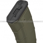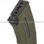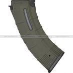 Механический магазин в защитном (оливковом) цвете корпуса, сам корпус изготовлен из ударопрочного пластика. Ёмкость магазина переключается между опциями 50 / 30 шаров. Для переключения необходимо вставить шестигранный ключ в небольшое отверстие в нижней части корпуса, надавить и повернуть примерно на пол оборота. Толкатель шаров подаёт все шары до последнего в камеру hop-up. Магазин подходит как для приводов серии CXP-ARK от ICS, так и к аналогам. В верхней части есть быстрый доступ к пружине для смазки и чистки.