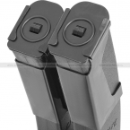 Спарка из двух механических магазинов для пистолета-пулемета Витязь (ПП-19-01) и ППК-20 от LCT. Каждый из магазинов вмещает ~50 шаров. Корпус выполнен из пластика. Цвет – черный.