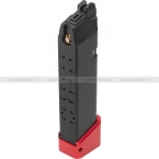 Магазин с красной пяткой для моделей страйкбольных пистолетов G17 и G18 от Double Bell. Заправляется углекислотой (CO2). Вместимость ~24 шара. Материал изготовления – металл.