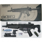 Точная страйкбольная версия боевого аналога пистолета-пулемета MP5A5. Несмотря на свои достаточно компактные размеры (501 мм со сложенным прикладом и 747 мм с выдвинутым), благодаря материалам изготовления, близким к боевому аналогу, CYMA CM041J отличается сравнительно большим весом – 3 кг 200 гр. Корпус (ствольная коробка) выполнен из металла, цевье и приклад – из ударопрочного ABS-пластика.