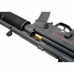 Прекрасно подходит для штурмовых целей, игры в зданиях и условиях ограниченного пространства. При стрельбе демонстрирует отличные показатели кучности, скорострельности (750-850 выстрелов в минуту) и скорости вылета шара (до 120 м/с). Имеет автоматический и полуавтоматический режимы огня.