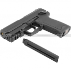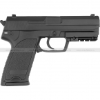 Страйбольная версия пистолета USP, разработанного компанией Heckler & Koch. USP от Cyma выполнен из сочетания пластика и металла. Пистолетная рукоять и корпус выполнены из ударопрочного ABS-пластика, а затворная рама и высоконагруженные элементы типа переключателя огня и спускового крючка. Из металла также выполнен и внутренний механизм пистолета (гирбокс, стволик и т.д.). Хоп-ап – регулируемый.