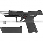 Корпус пистолета изготовлен из высококачественного, прочного пластика. Слайд – пластиковый. Магазин – металлический, включая "губки". Модель пистолета поставляется в персональном пластиковом кейсе.