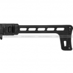 Основная рамка КИТа – пластиковая. Цевье выполнено из алюминия, имеет интерфейс M-LOK. Пластиковый приклад не регулируется по длине, но складывается вправо, делая модель очень компактной. Установка дополнительного оборудования (например, коллиматорного прицела) также возможна на 20 мм рельсу (RIS), которая идет по всей верхней грани.