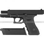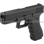 Страйкбольная реплика австрийского пистолета Glock 17 от тайваньской компании KJW (в комплекте с пистолетным магазином). Принцип действия представленной модели пистолета основан на действии грингаза (Green gas).