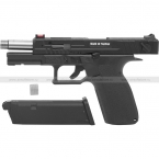 Версия пистолета с 14 мм отрицательной (CCW) резьбой для установки глушителя или трассерной насадки (в комплект не входят). Модель совместима с магазинами от G17 (KP-17) и G18 (KP-18) производство KJW.