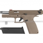 Версия пистолета с 14 мм отрицательной (CCW) резьбой для установки глушителя или трассерной насадки (в комплект не входят). Модель совместима с магазинами от G17 (KP-17) и G18 (KP-18) производство KJW.