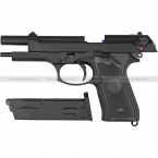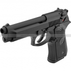Стрельба крайне реалистична. Так же, как и боевой аналог, затворная рама KJW M9 движется при стрельбе за счет энергии газа (Gas Blow Back). После последнего шара в обойме, рама отводится назад и фиксируется. Скорость вылета шара составляет около 100 м/с.