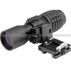 Откидной магнифер с трёхкратным увеличением. Корпус выполнен из алюминия. Устанавливается на 20 мм (RIS) планку. Вес ~335. Длина – 142 мм.