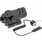 Коллиматорный прицел с лазерным целеуказателем (ЛЦУ) призван увеличить скорость наведения, точность и кучность при стрельбе из страйкбольного оружия. Оптимальный вариант для работы по движущимся целям.