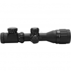 Прицел, бленда, защитные накладки на линзы, крепежные кольца (10 мм), батарейки
