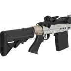 Страйкбольная снайперская винтовка M14 EBR от CYMA. Способна вести огонь в автоматическом и полуавтоматическом режиме. В базовой комплектации скорость вылета составляет 120 м/с шаром 0,20 гр. Длина внутреннего стволика 445 мм обеспечивает прекрасную кучность попаданий. Диаметр внутреннего ствола – 6,08 мм.