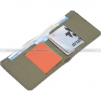 Стильный кошелек в стиле милитари для наличных и банковских карт от компании WARTECH, модель AP-106. В конструкции идет отсек для купюр и четыре прорезных кармана под банковские карты, визитки, карты доступа, проездной и иные плоские предметы схожего размера. Кошелек изготовлен из прочной ламинированной ткани. На внешней стороне есть небольшая велкро-панель.